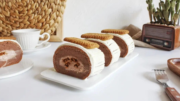 ⑥ The front of the frozen cake roll will not peel. If your cake roll peels or cracks, you can squeeze light cream on it to decorate it